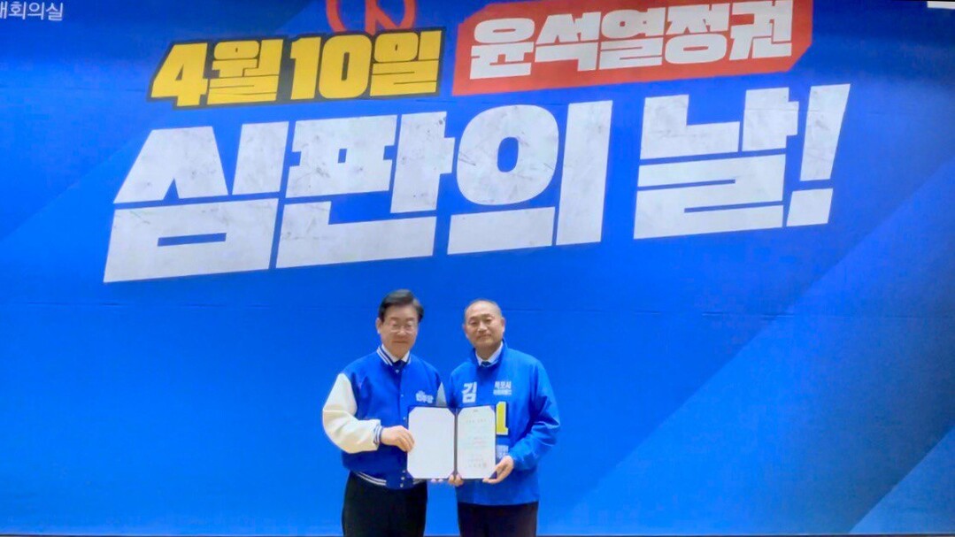 | ▲ 17일 더불어민주당 김원이 목포시 후보가 국회에서 이재명 당대표로부터 22대 총선 공천장을 받은 뒤 기념촬영을 하고 있다. [김원이 캠프 제공] |