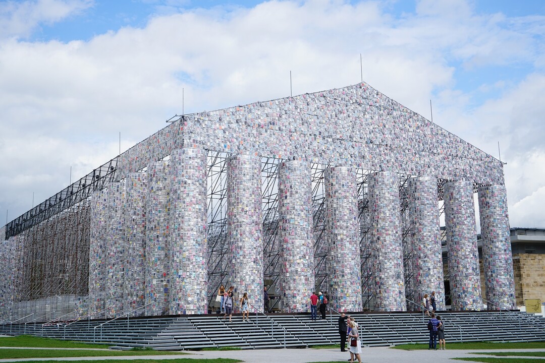| ▲ 이은화 작가는 1997년~2023년까지 매번 '카셀도쿠멘타'를 찾아 사진과 글로 현장을 기록했다. 사진은 2017년 도쿠멘타 화제작이었던 마르타 미누힌의 '책 파르테논' 설치 전경 [작가 제공] |