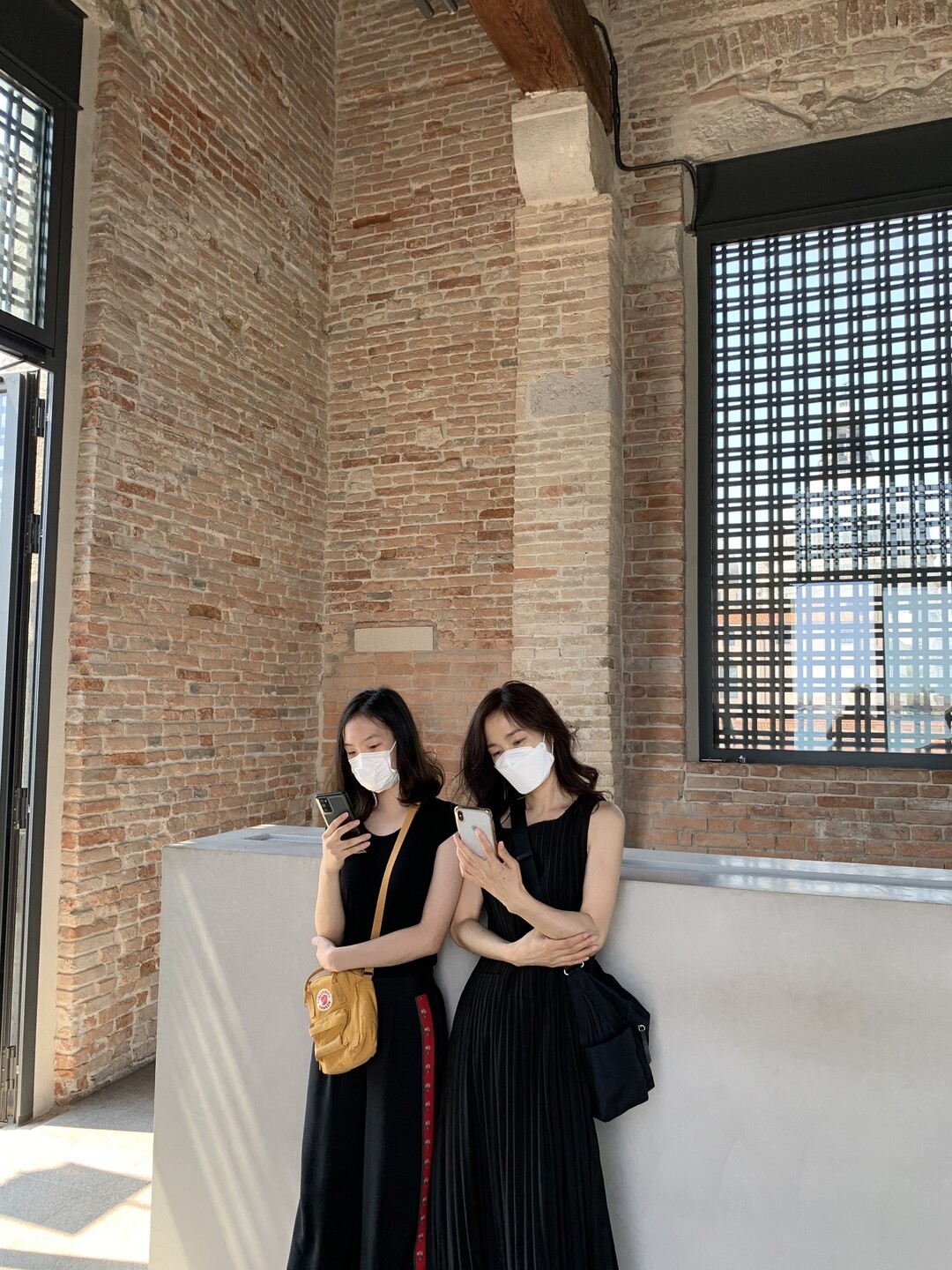 | ▲ 두살 때부터 베니스비엔날레를 따라다녔던 딸은 이제 엄마만큼 자란 중학생이 됐다. 2022년 베니스 비엔날레 취재 여행 중에 찍은 사진. [작가 제공] |