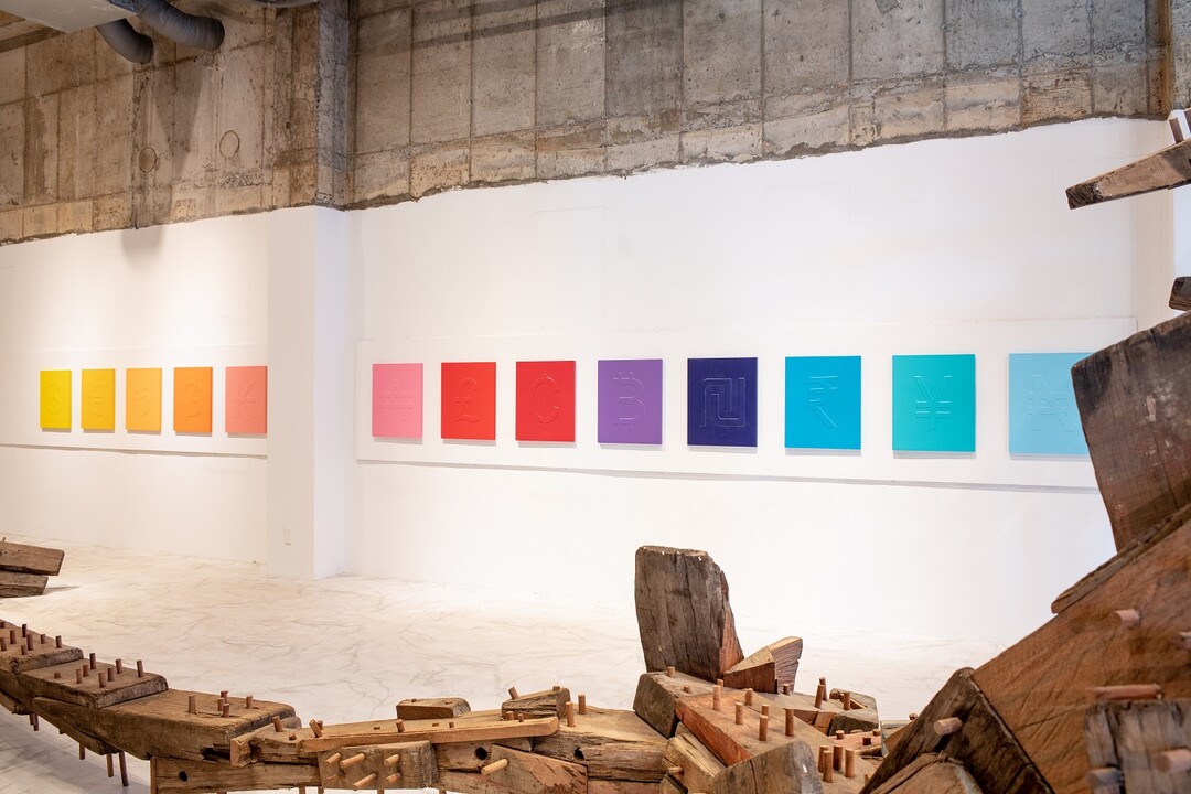 각종 화폐 기호들이 나란히 벽면을 채우고 있다. 화폐는 권력과 소유에 대한 욕망을 상징한다. “화폐를 통제하는 자, 모든 것을 지배한다”는 ‘화폐전쟁’의 저자 쑹훙빙의 말처럼. 하지만 세계 주요 기축통화인 달러 유로 파운드 엔화 등과 달리 코스타리카의 콜론, 콜롬비아의 페소, 아프가니스탄의 아프가니, 파키스탄의 루피, 카타르의 리얄 등 힘없는 제3세계 국가 화폐는 일종의 추상화처럼 보인다. 이 작가는 “모든 화폐 기호를 똑같은 무게와 규격의 그림으로 제작해 배열했다. 정치, 경제의 영역이 아닌 적어도 미술의 영역에서는 모두가 평등하길 바라는 이유다. 무지개를 연상하는 다양한 색은 결국 더 나은 세상을 위해서는 강자와 약자가 함께 협력하고 조화를 이루어야 한다는 것을 상징한다”고 전했다.
