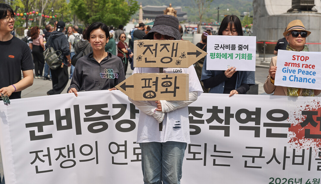 2026 세계군축행동의 날(Global Days of Action on Military Spending, GDAMS)을 맞아 27일 오전 서울 종로구 광화문광장에서 시민사회단체들이 <군비증강의 종착역은 전쟁일 뿐 – 전쟁의 연료가 되는 군사비를 줄여라>를 주제로 기자회견을 열었다.