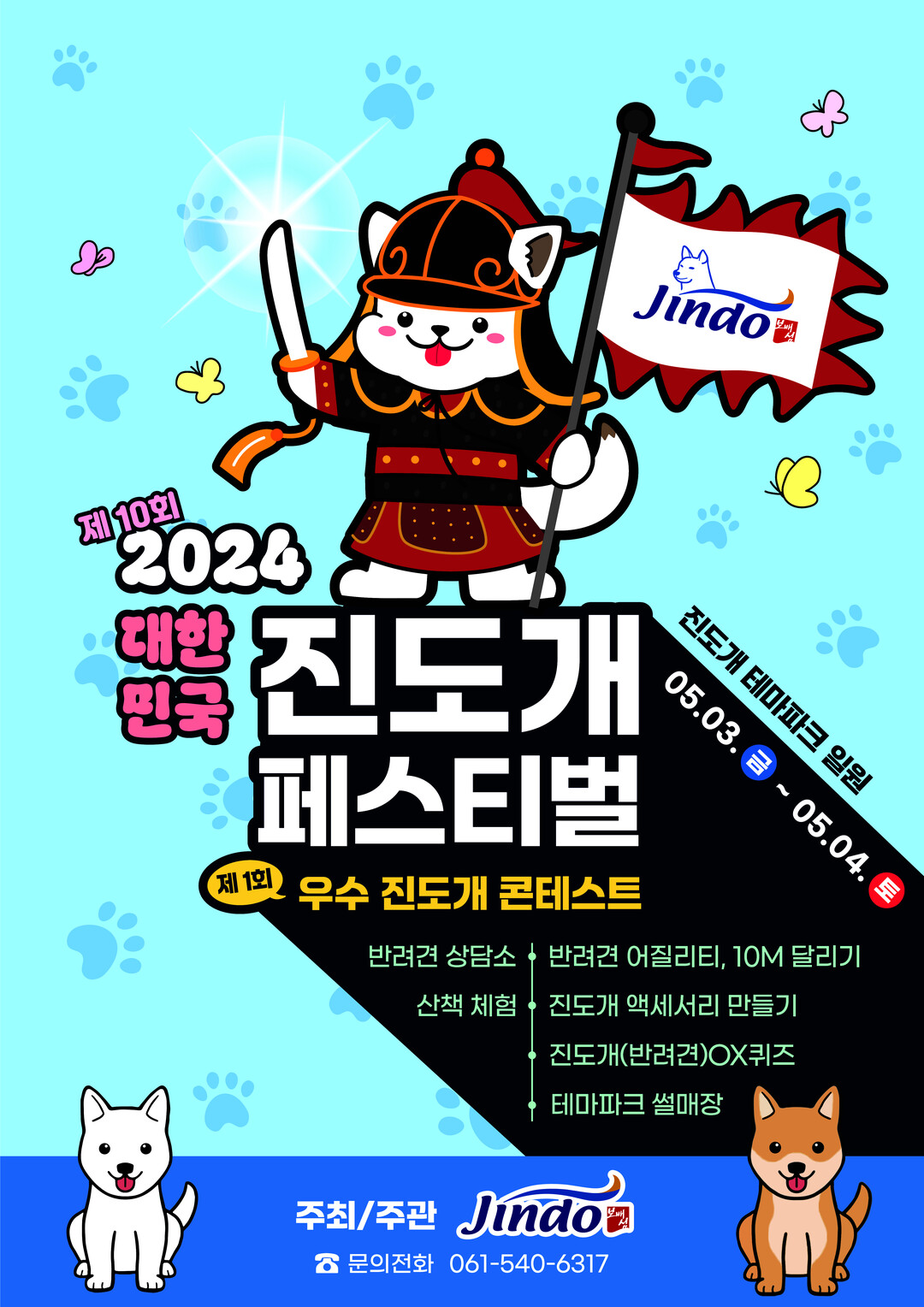 전남 진도군이 오는 5월 3일부터 이틀동안 진도개테마파크 일원에서 '제10회 대한민국 진도개 페스티벌'을 개최한다.