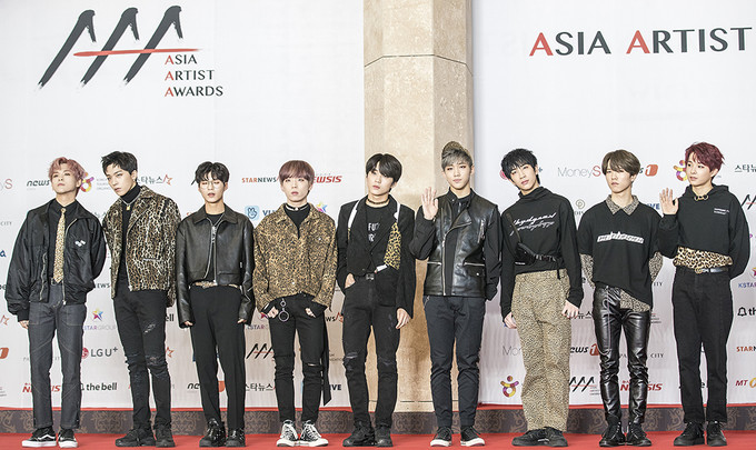 그룹 디크런치가 28일 오후 인천 중구 파라다이스시티 아트스페이스 플라자에서 열린 ‘2018 AAA(Asia Artist Award)’ 레드카펫 행사에서 포즈를 취하고 있다.