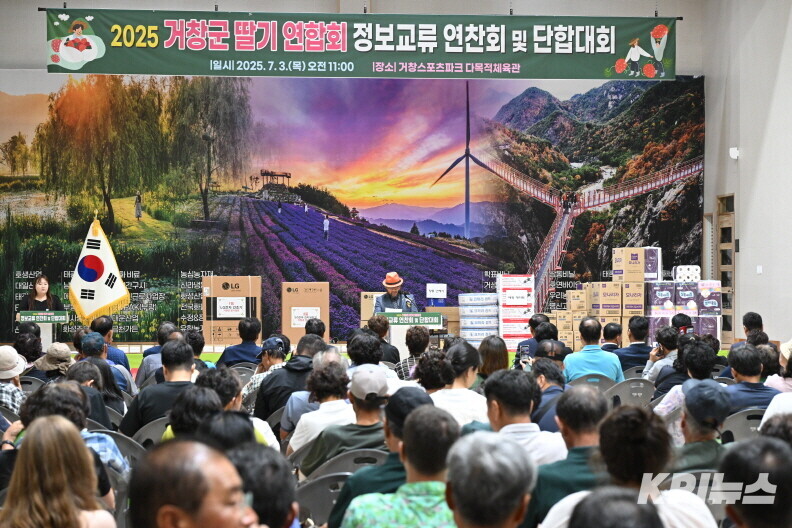 거창군딸기연합회(회장 류지봉)는 3일 거창읍 다목적체육관에서 구인모 군수를 비롯해 딸기연합회 회원 400여 명이 참석한 가운데 정보교류 연찬회 및 단합대회를 개최했다.