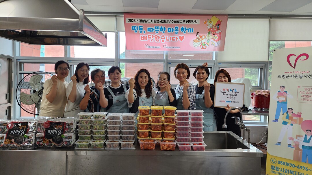 이 사업은 2025년 경상남도자원봉사센터 우수프로그램 공모사업으로 선정된 프로그램이다. 관내 독거 어르신 등 취약계층 30가구에 자원봉사자들이 제철 식재료들을 이용해 직접 밑반찬을 조리해 만들어 배달하는 활동이다.