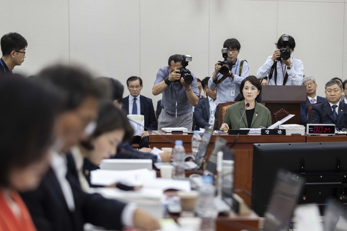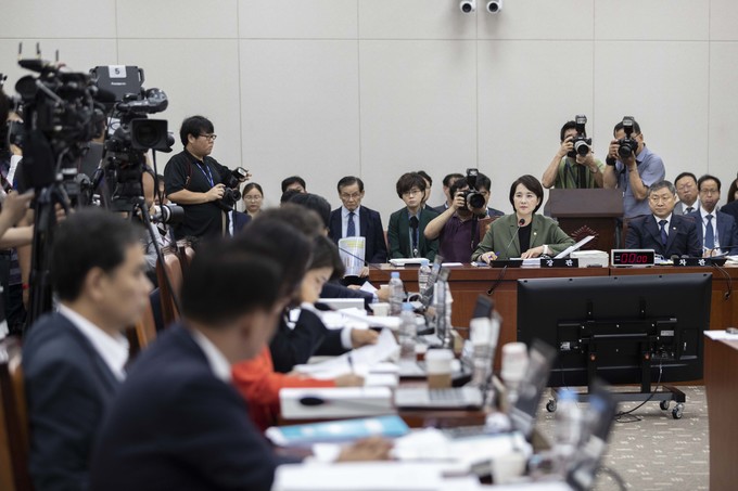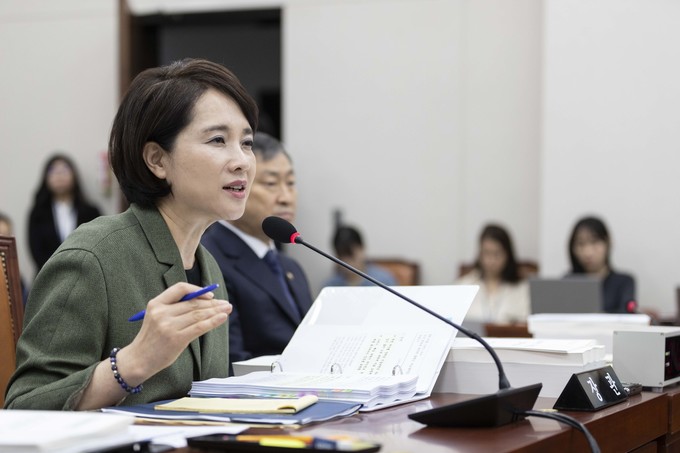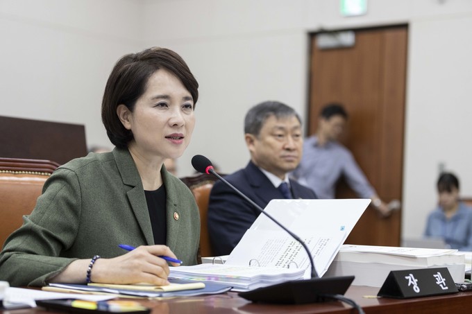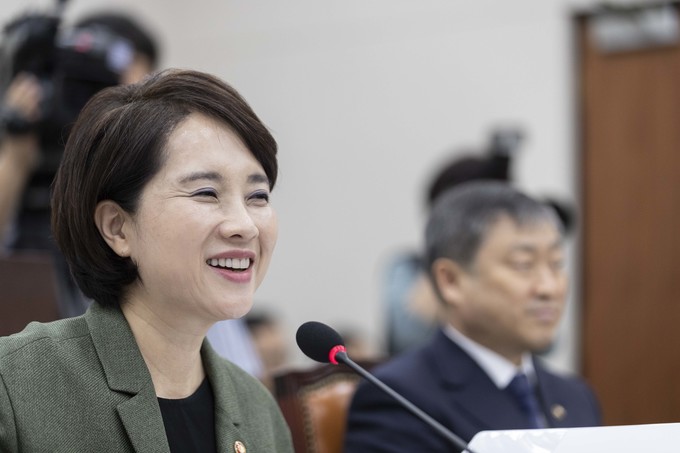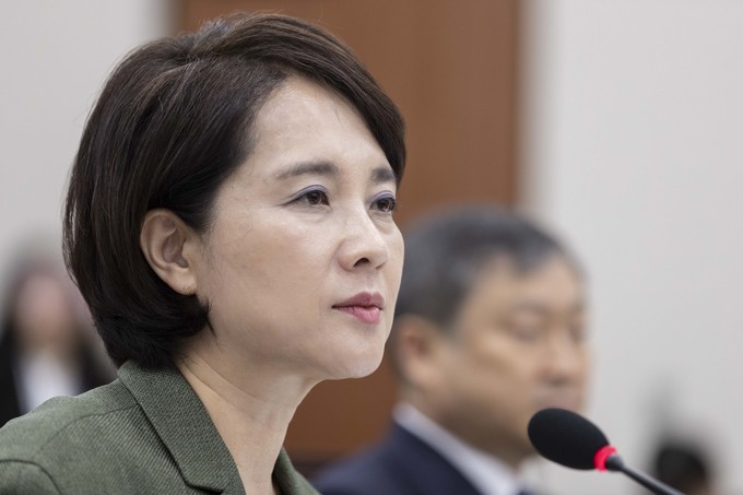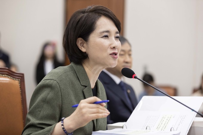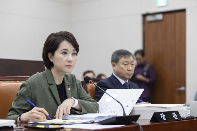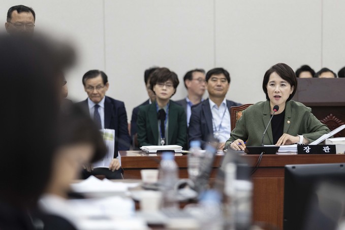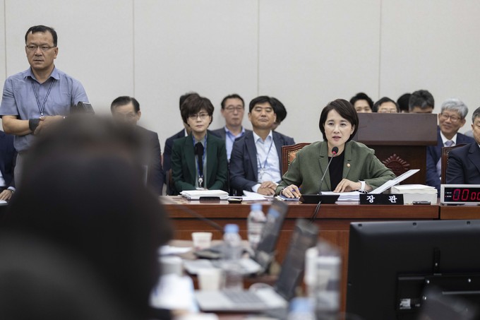 유은혜 사회부총리 겸 교육부 장관이 2일 서울 여의도 국회에서 열린 교육위원회 국정감사에 출석해 의원들의 질의를 듣고 있다.