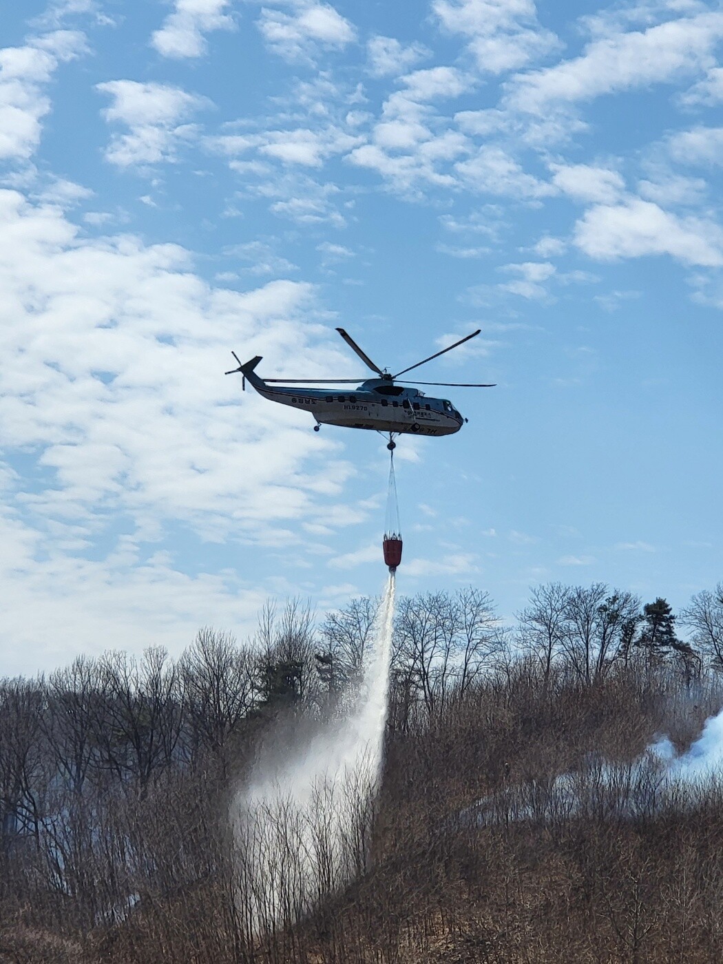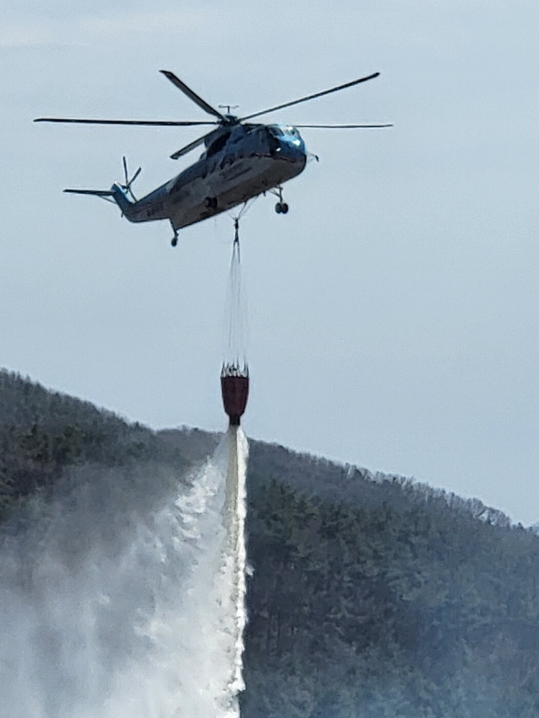 | ▲천안 목천 산불 현장에서 헬기가 물을 뿌리고 있다.[UPI뉴스] |