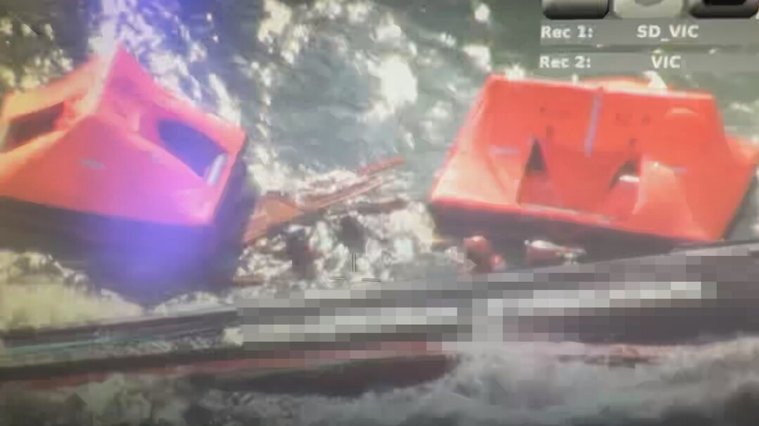 | ▲ 4일 오전 10시27분쯤 전남 신안군 가거도 인근 해상에서 침몰하고 있는 낚싯배에서 해경이 낚시객을 구조하고 있다. [목포해경 제공] |