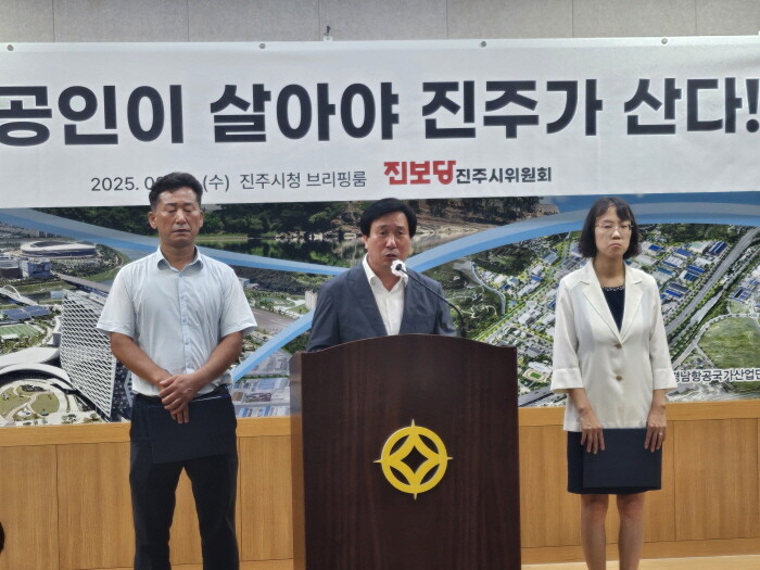 진주시위원회는 20일 진주시청 브리핑룸에서 기자회견을 갖고 "지역 곳곳에 빈 점포가 늘어나고, 소비심리는 위축되고 있다"며 "골목 경제를 살리는 것은 가장 시급한 민생 사안"이라고 강조했다.