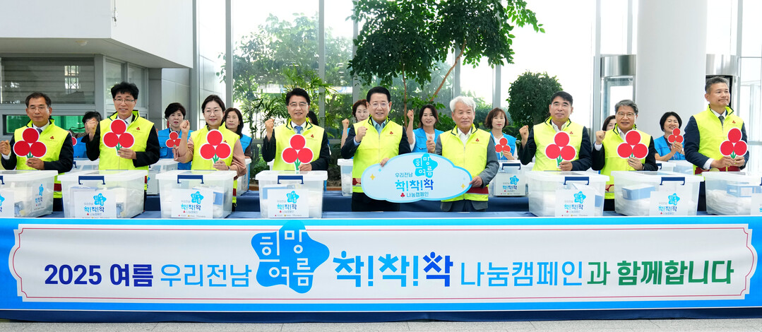 | ▲ 김영록 전라남도지사와 김태균 전남도의회 의장이 11일 도청 윤선도홀에서 열린 '우리전남 희망여름 착!착!착! 캠페인' 출범식에서 참석자들과 기념촬영을 하고 있다. [전남도 제공] |