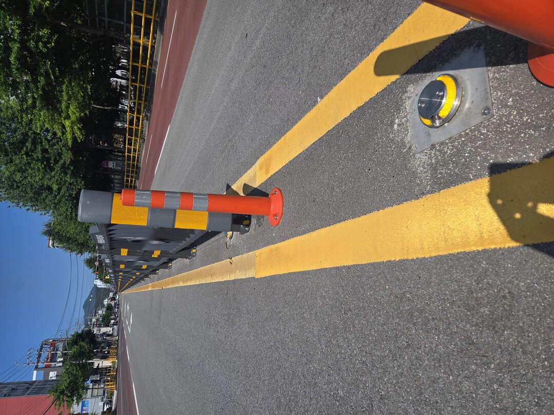 | ▲ 삼문동행정복지센터에서 미리벌초등교 구간에 쿨링로드가 노즐 고장으로 물을 분사하지 못하고 있는 모습 [손임규 기자] |