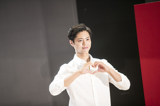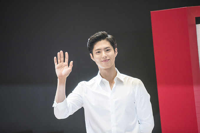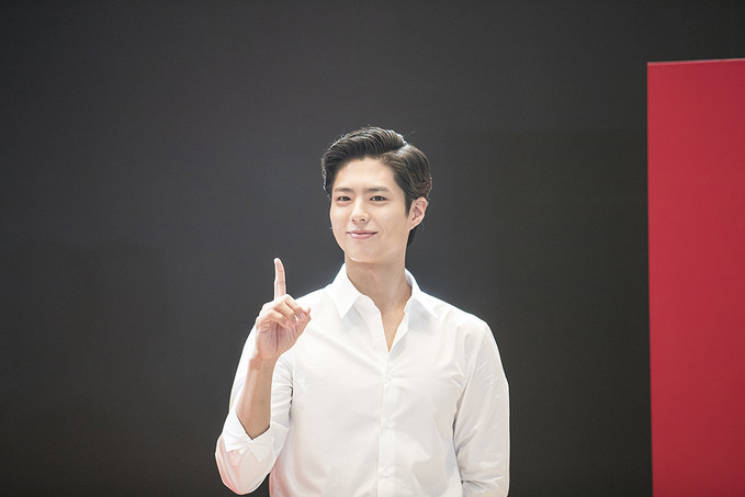 11일 오전 서울 종로구 포시즌스호텔에서 열린 ‘위닉스, 텀블 건조기 출시’ 기자 간담회에서 배우 박보검이 스포트라이트를 받으며 눈부신 자태로 포토타임을 가지고 있다.