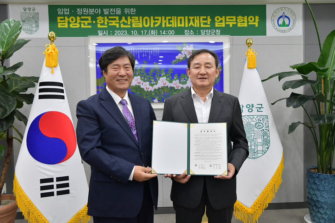전남 담양군이 지난 17일 한국산림아카데미재단과 임업과 정원분야 발전을 위한 업무협약을 체결했다.