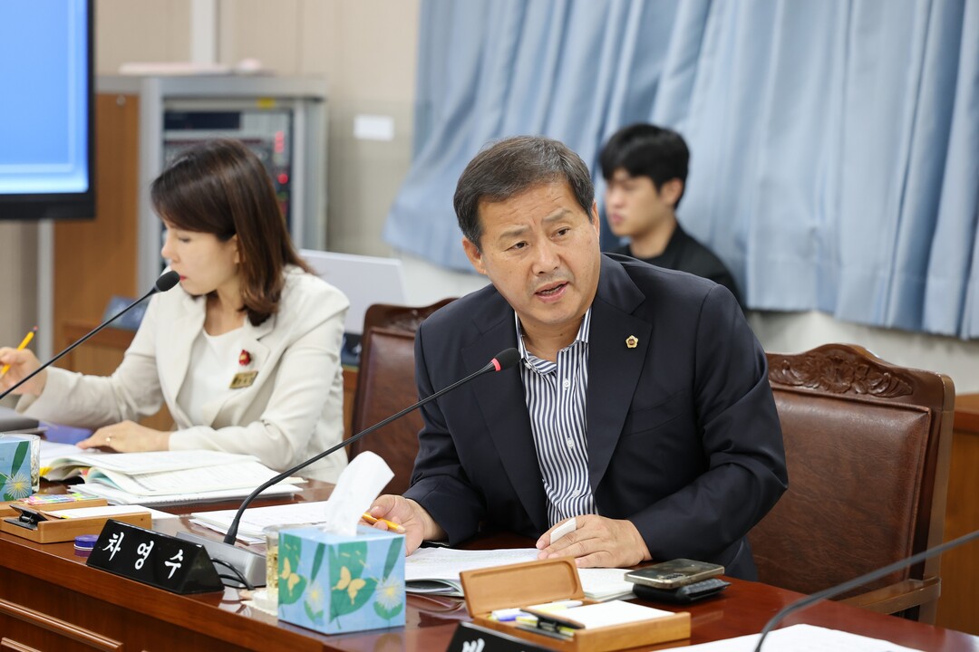 | ▲ 전라남도의회 차영수(더불어민주당·강진) 의원이 환경산림국 업무보고에서 영산강 하굿둑 해수유통에 대해 발언을 하고 있다. [전남도의회 제공] |
