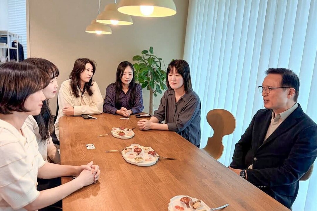 | ▲ 28일 경기도선거관리위원회에 경기교육감 선거 예비후보 등록을 마친 임태희 경기교육감이 교사들을 찾아 대화를 나누고 있다. [임태희 SNS 캡처] |