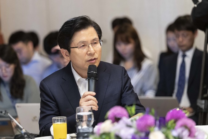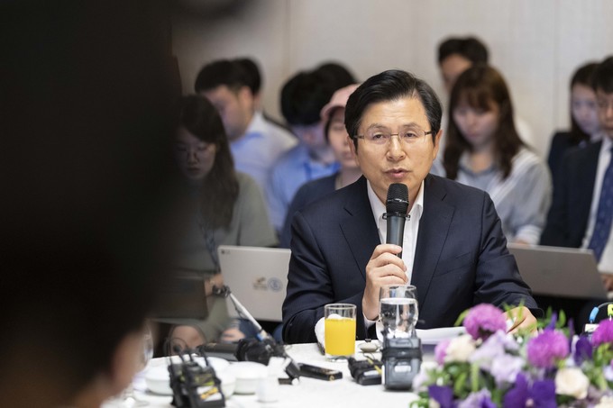자유한국당 황교안 대표가 12일 오후 서울 여의도 국회 사랑재에서 열린 '문 의장 주최 초월회 오찬 간담회'에 참석해 발언하고 있다.