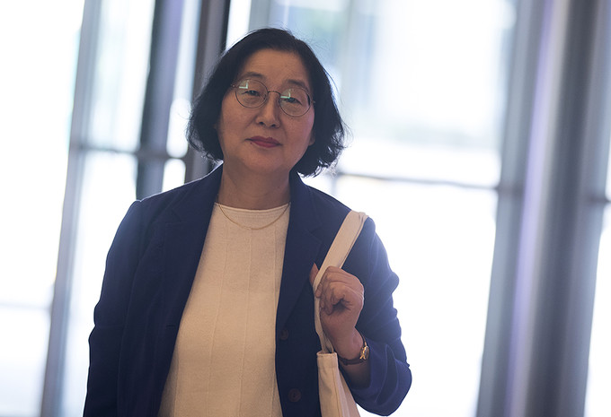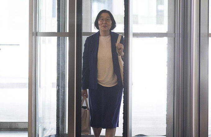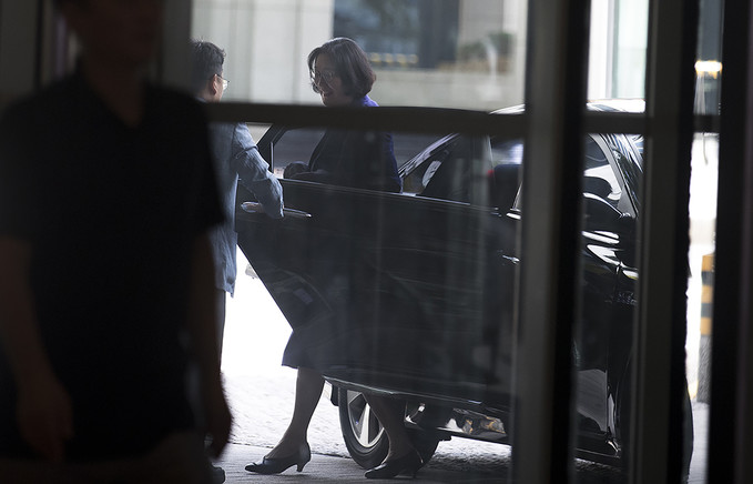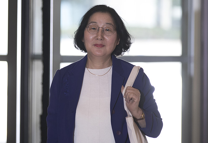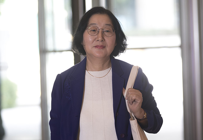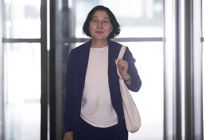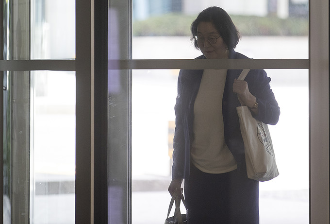 이정옥 여성가족부 장관 후보자가 16일 오후 서울 종로구 이마빌딩에 마련된 인사청문회 사무실로 출근하고 있다.