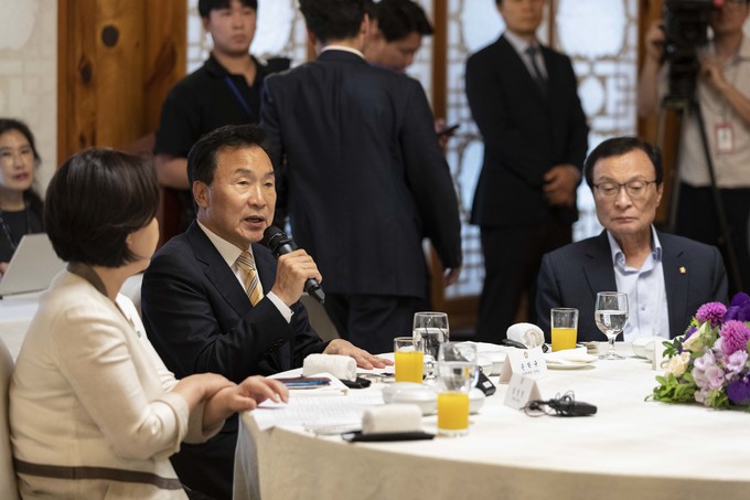 바른미래당 손학규 대표가 12일 오후 서울 여의도 국회 사랑재에서 열린 '문 의장 주최 초월회 오찬 간담회'에 참석해 발언하고 있다.