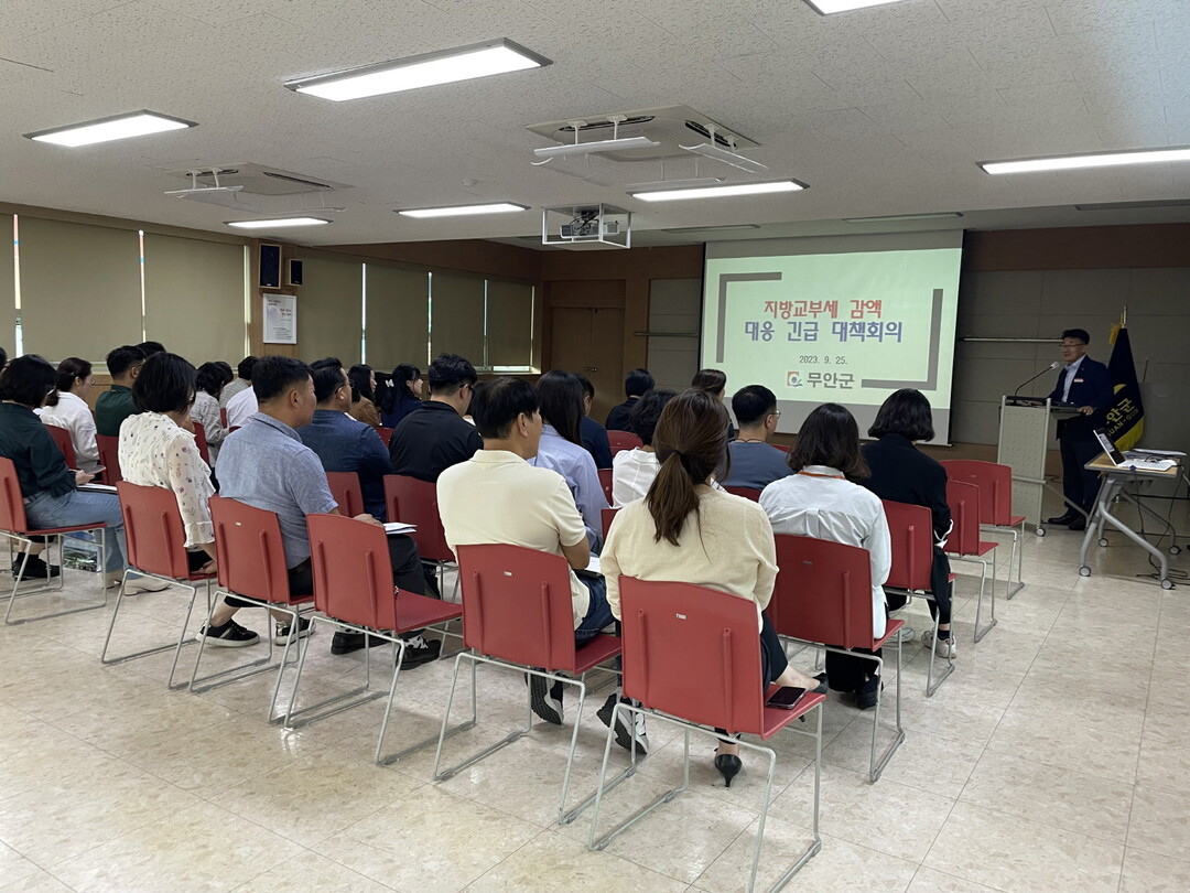 | ▲ 지난 25일 무안군이 지방교부세 감액 대응 예산 담당자 긴급 회의를 갖고 있다. [무안군 제공] |