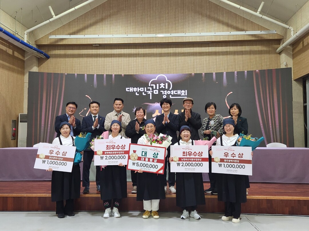 경연 결과, ‘다슬기 동김치’를 선보인 임란(광주광역시) 씨가 대통령상을 수상했으며 ▲농림축산식품부 장관상 천순복(전남 나주) 씨의 ‘낙지양파김치’ ▲문화체육부 장관상 최후경(전남 여수) 씨의 ‘사과말랭이 갑오징어 돌산갓 보쌈김치’가 각각 수상의 영예를 안았다.