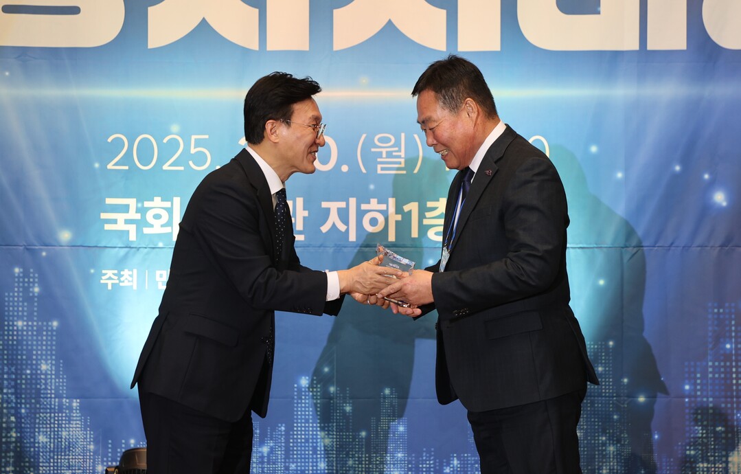 | ▲ 김산 전남 무안군수가 지난 10일 국회도서관에서 열린 '더불어민주당 지방자치대상' 시상식에서 지역경제 활성화 부문 '창의정책상'을 수상하고 있다. [더불어민주당 제공] |