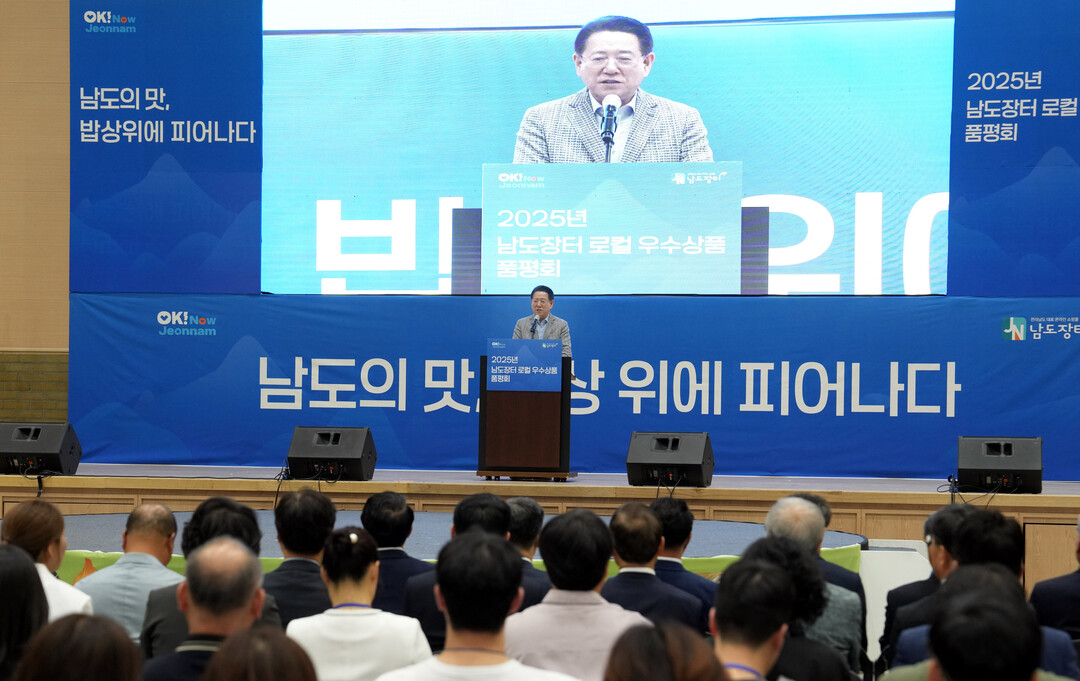 | ▲ 김영록 전라남도지사가 28일 순천만생태문화교육원에서 열린 '2025 남도장터 로컬 우수상품 품평회' 행사에서 인사말을 하고 있다. [전남도 제공] |