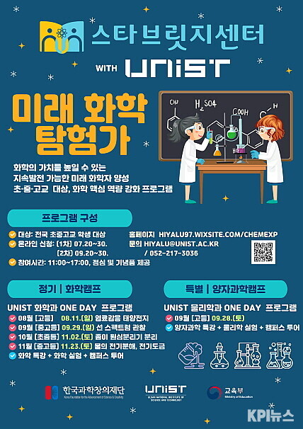 한편 2024 UNIST 화학캠프는 교육부, 한국과학창의재단, UNIST 화학과의 지원을 받아 스타브릿지센터에서 운영한다.