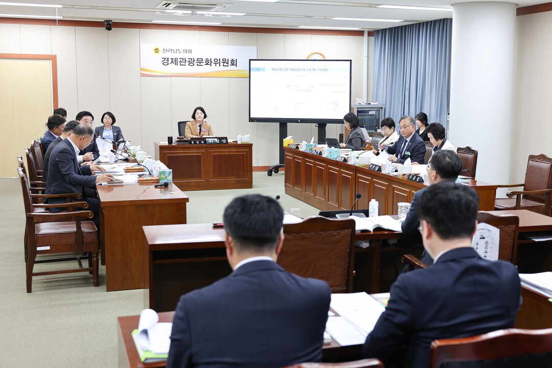 | ▲ 전라남도의회 경제관광문화위원회가 제395회 제2차 정례회 일자리투자유치국 행정사무감사를 벌이고 있다. [전남도의회 제공] |