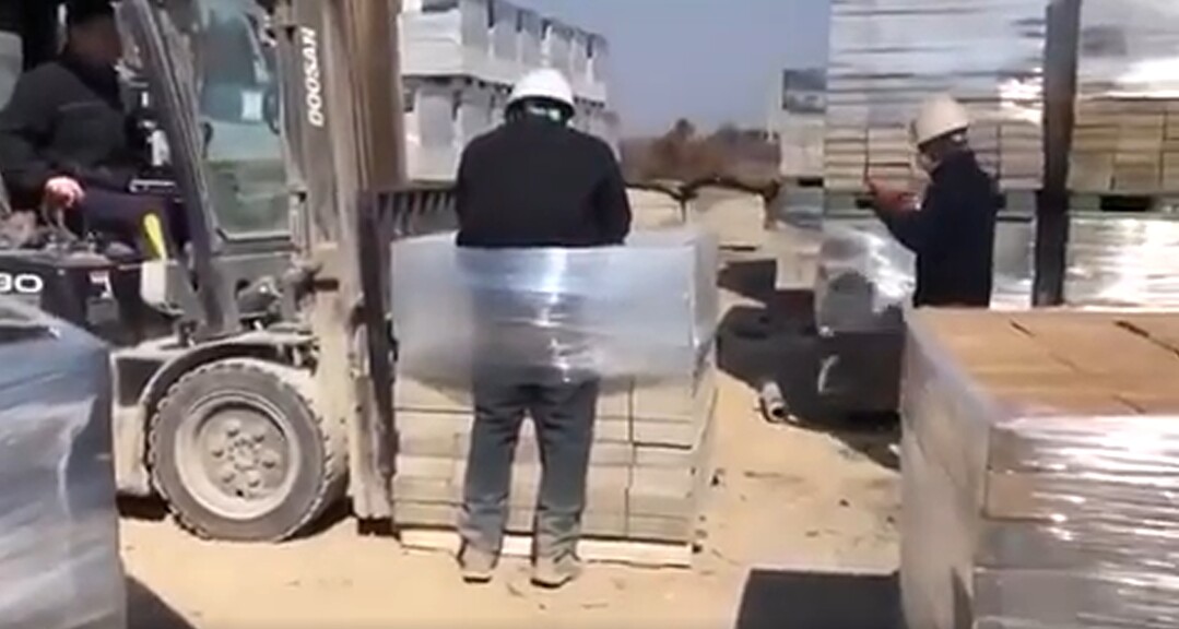 | ▲ 전남 나주의 한 벽돌공장에서 30대 스리랑카 출신 이주노동자가 이달 초 벽돌에 흰색 비닐로 결박된 채 지게차에 매달려 있다. [전남이주노동자인권네트워크 제공] |