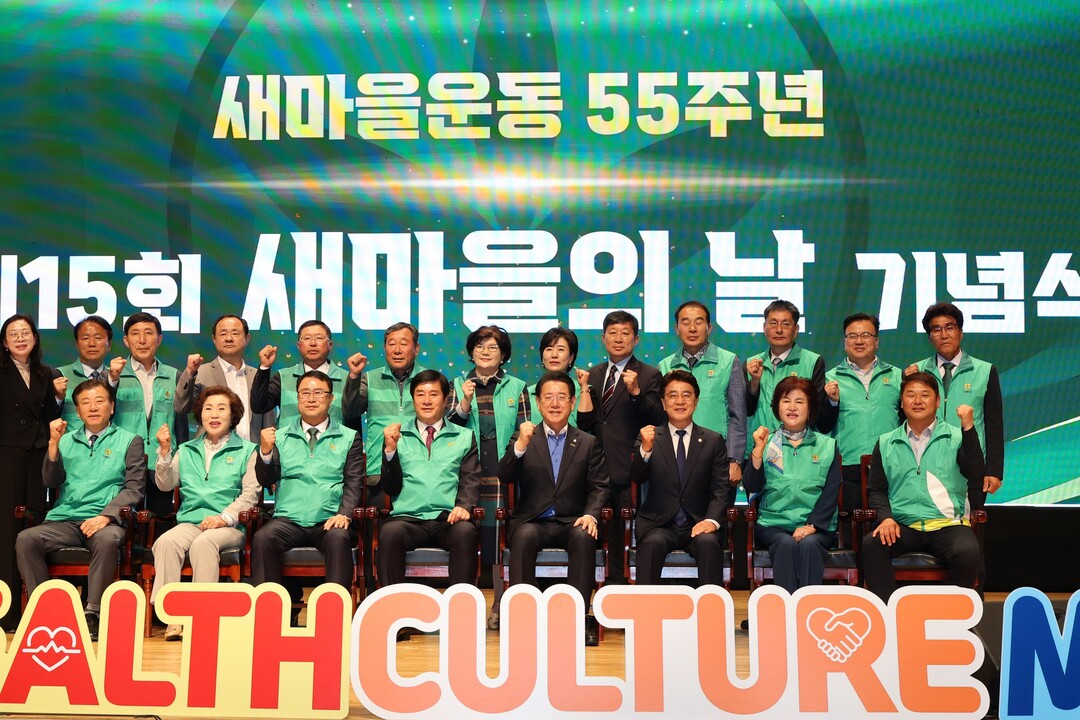 김 의장은 축사에서 "55주년이 된 새마을운동이 예전에는 먹고살기 위해서 했지만, 지금은 지속적인 발전을, 캐치프레이즈처럼 미래로 세계로 나가고 있다"며 "전국 180만 새마을지도자와 회원 여러분께서는 지역사회를 아우르는 연대와 협력의 모범이 되고 있다"고 강조했다.