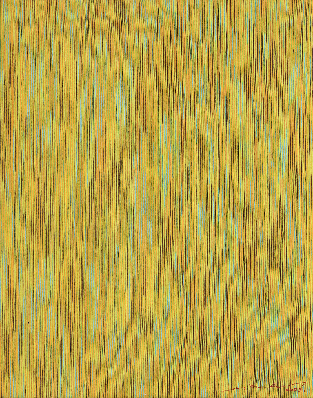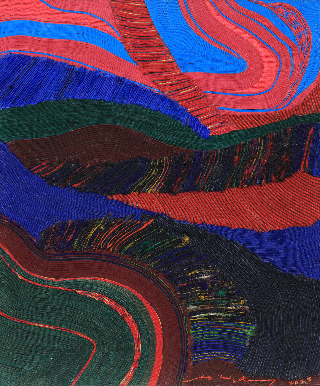 이런 실을 물감과 치환해 캔버스 위에 자기 미술 세계를 구현하는 한국 작가가 있다. 김성혜 작가다. 현대미술은 '한계와 제한이 없다'는 정의처럼 여러 국내외 작가는 이미 다양한 혁신적 사고와 방식을 미술에 도입하고 있다. 김 작가의 이런 시도도 어떤 면에서 '그럴 수 있겠다'고 받아들일 수 있다. 그래도 조금만 돌려 생각하면 그가 선택한 '실'은 고도의 철학적 의미와 역사성을 내포하고 서로 다른 미술 장르를 꿸 수 있는 독특한 재료임엔 틀림없다. 그도 사실 수십 년 물감으로 그림을 그렸다고 한다. 물감을 내려놓고 실을 선택하기까지 수십 년이 걸린 것이다.