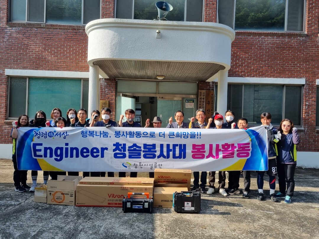 30일 창원시에 따르면 엔지니어청솔봉사대 대원 20여 명은 지난 28일 반동경로당을 찾아 전기시설 보수 및 물탱크 누수배관 교체 등 환경정비 작업을 벌였다.