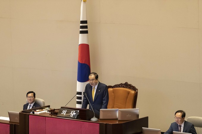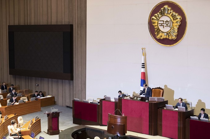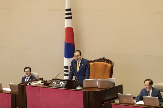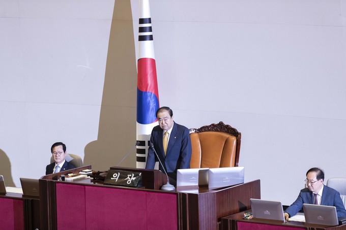 문희상 국회의장이 27일 오후 서울 여의도 국회에서 제371회 국회(정기회) 제3차 본회의 대정부질문(외교·통일·안보에 관한 질문)을 개의하고 있다.