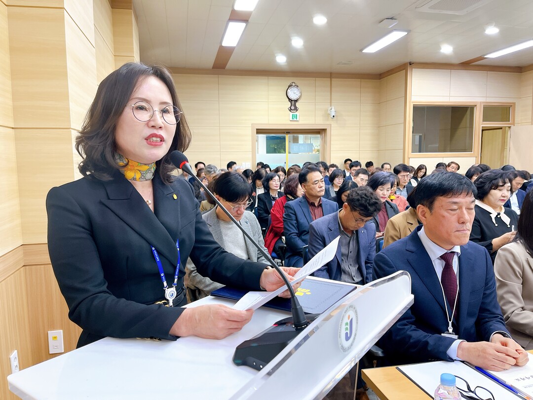 | ▲ 5일 변정빈 전남 나주교육장이 나주교육지원청에서 열린 2024년 전남도의회 교육위원회 행정사무감사에서 업무보고를 하고 있다. [강성명 기자] |