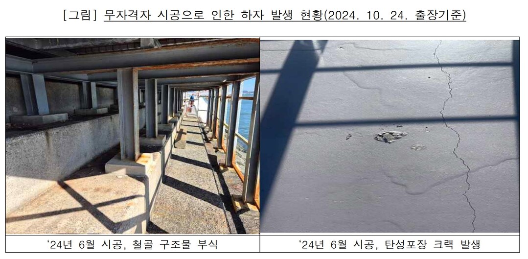 해변맛길 30리 5구간, 철골 구조물 부식 등 부실 시공 적발