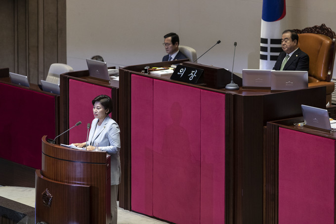 더불어민주당 남인순 의원이 11일 오후 서울 여의도 국회에서 열린 본회의 대정부 질문에서 발언하고 있다.