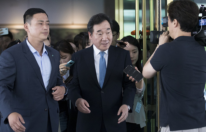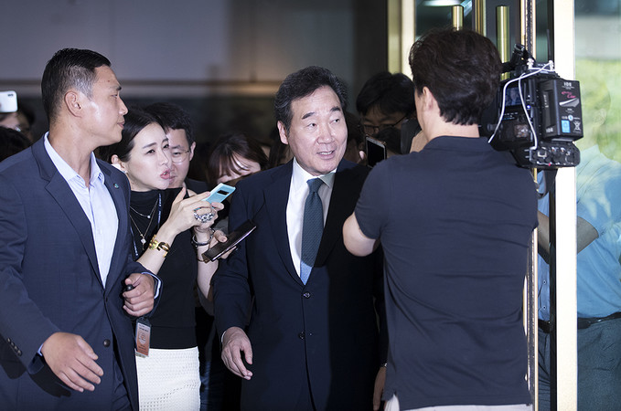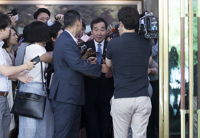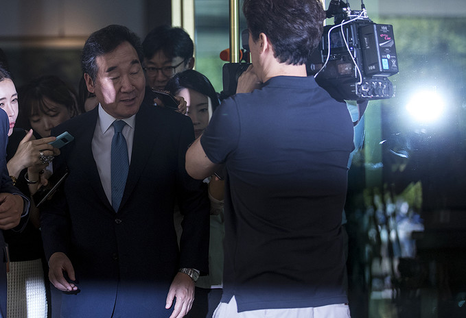 이낙연 국무총리가 22일 오전 서울 종로구 정부서울청사를 나가는 도중 취재진들로부터 '한일군사정보보호협정(GSOMIA·지소미아)' 연장 여부에 관한 질문을 받고 있다.