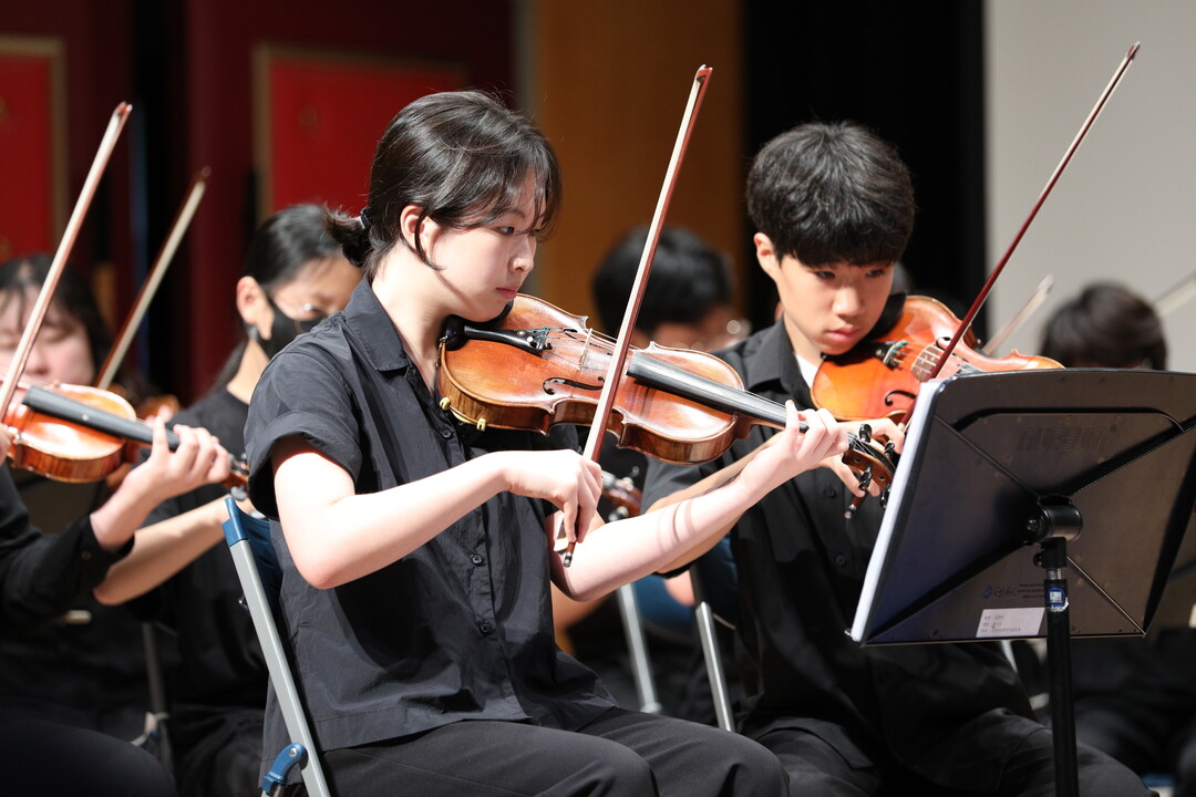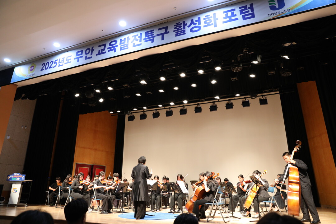 | ▲ 20일 무안연합청소년오케스트라가 전남 무안군 남악복합주민센터에서 열린 '2025 무안 교육발전특구 활성화 포럼'에서 축하공연을 하고 있다. [강성명 기자] |