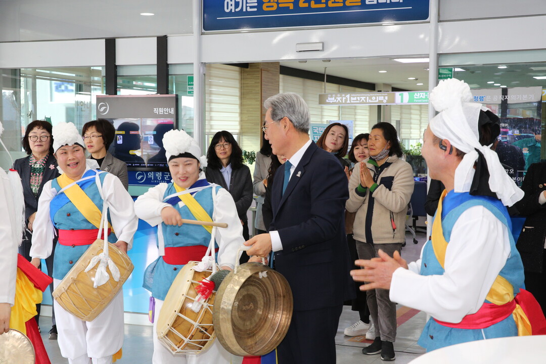 의령읍 농악단은 25일 병오년 정월대보름을 맞아 군청과 읍사무소 등 공공기관·농협·전통시장 일대에서 지신밟기 행사를 열었다.