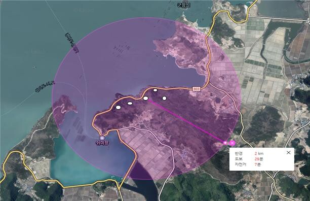 진도군 조례안 제18조 개발행위허가 기준에 따르면 풍력 발전의 경우 지방도에서 '직선거리 700M 안에 입지해 있으면 안된다'고 나와 있다.