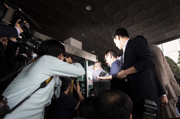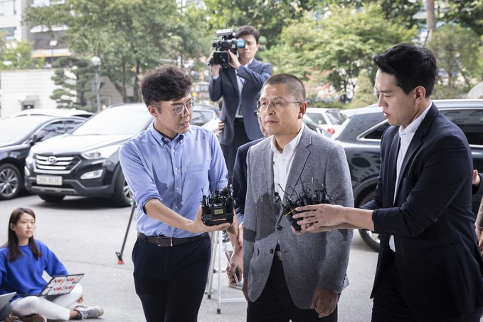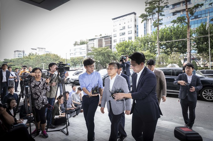 자유한국당 황교안 대표가 지난 국회 패스트트랙 사건 관련 조사를 받기 위해 1일 오후 서울 양천구 남부지검에 출석하고 있다.