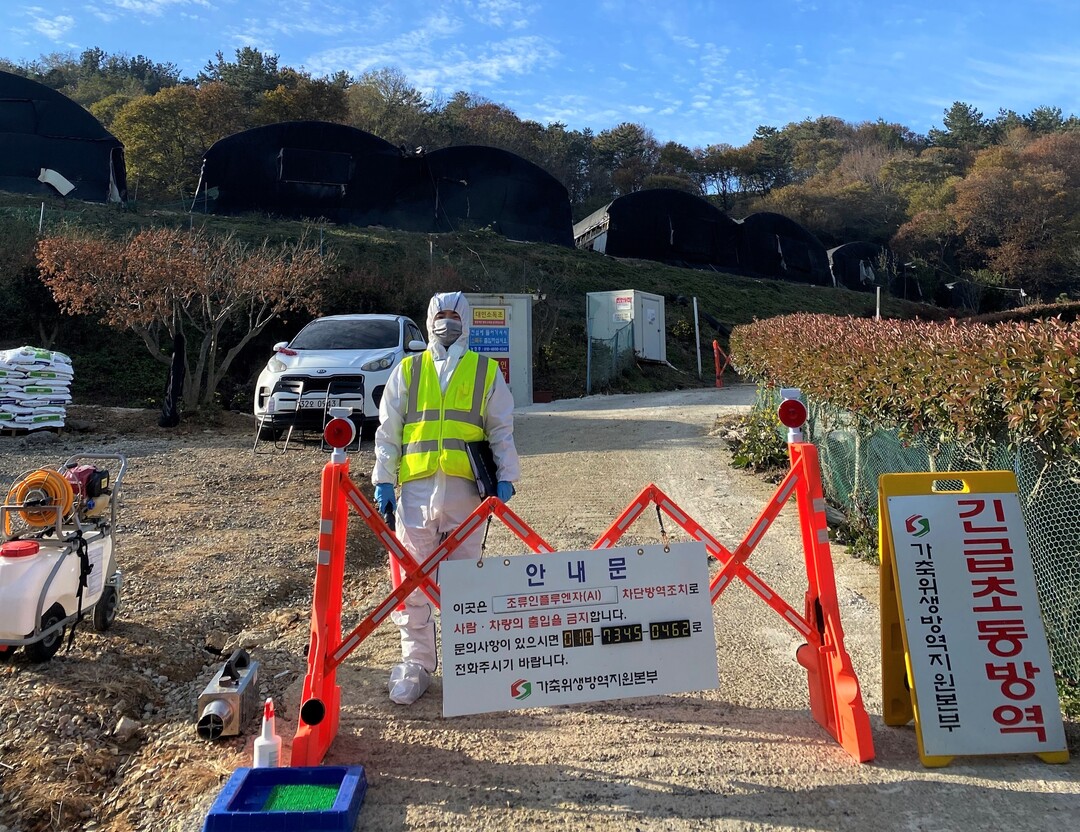 | ▲ 전남도가 지난 3일 고흥 고병원성 AI 발생농장 입구를 통제하고 있다. [전남도 제공] |