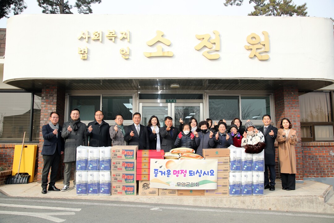이호성 전남 무안군의회 의장을 비롯한 의원 9명이 22일 설 명절을 앞두고 사회복지시설 소전원과 일로지역아동센터를 방문해 위문품을 전달했다.