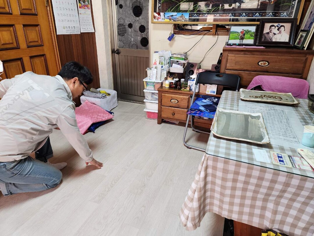 | ▲ 의령군 직원이 보훈대상자 주택을 찾아 바닥 단열 등 주거환경을 살피고 있다. [의령군 제공] |