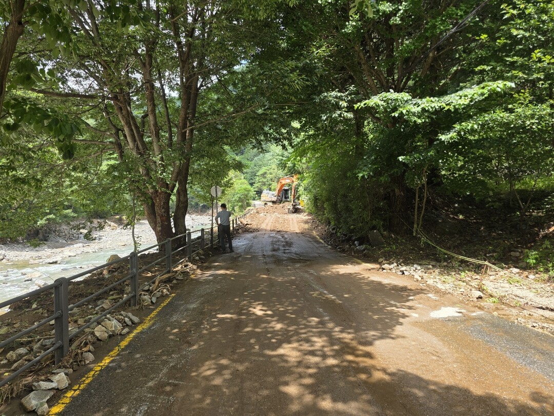 | ▲ 가평군이 용추계곡 진입로 2.4㎞에 차가 다닐 수 있을 정도로 응급 복구했다. [가평군 제공] |