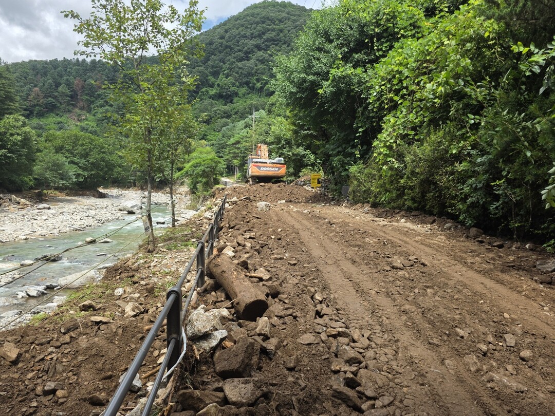 | ▲ 가평군이 가평읍 승안리 연인산도립공원부터 용추계곡 버스 종점까지 2.4㎞의 도로를 응급 복구하고 있다. [가평군 제공] |