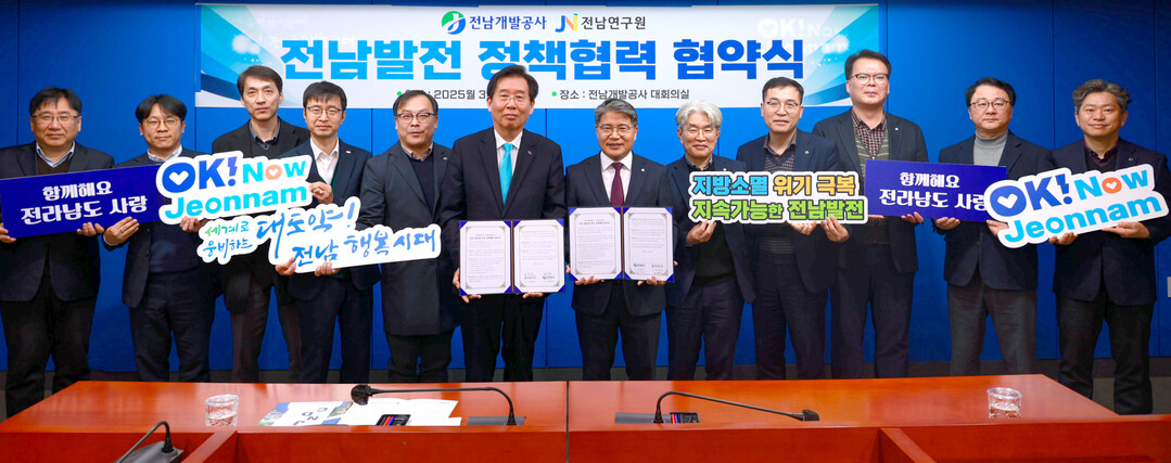 전남개발공사와 전남연구원이 지방소멸위기 등 지역문제의 심각성을 인식하고 전남 발전을 견인할 수 있는 정책 발굴에 협력하기 위해 5일 '전남발전 정책협력 협약'을 체결했다.