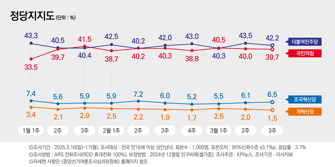 정당 지지도…민주당 42.2% 국민의힘 39.7%