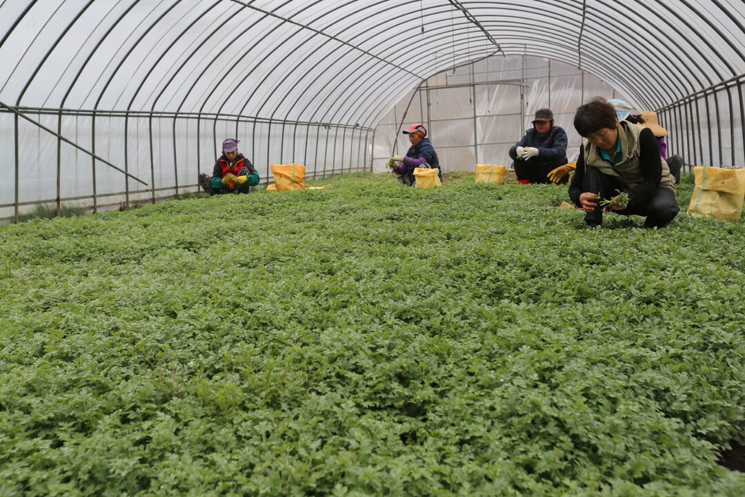 | ▲ 해남 쑥을 수확하고 있는 해남읍 월교마을 주민들 [해남군 제공] |
