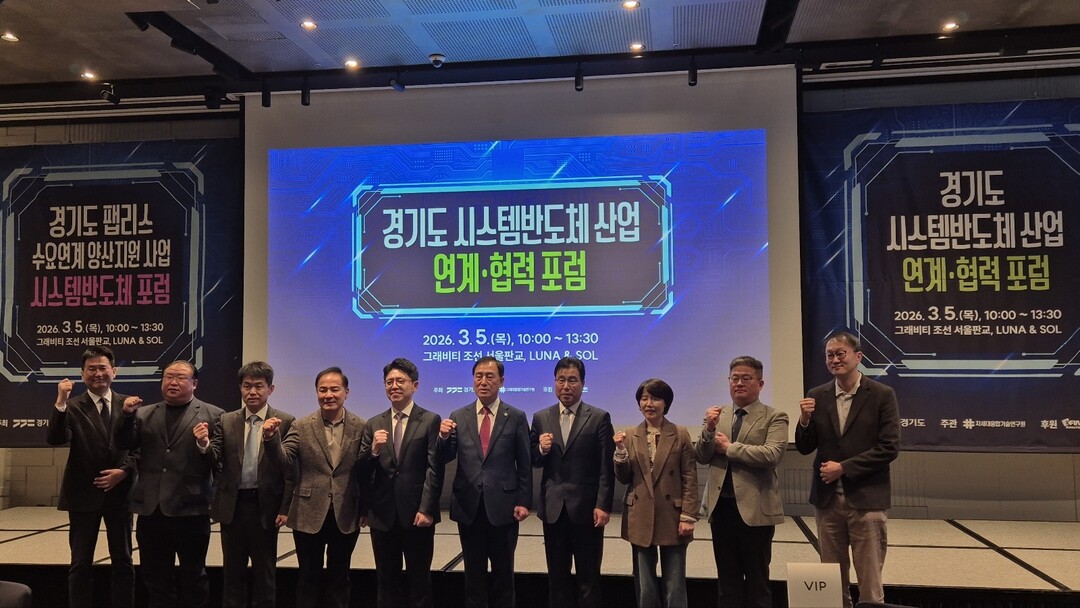 경기도가 시스템반도체 산업 경쟁력 강화를 위해 5일 그래비티 조선 서울 판교에서 '경기도 시스템반도체 산업 연계·협력 포럼'을 열고 산업계·학계·연구기관 간 협력 방안을 논의했다.